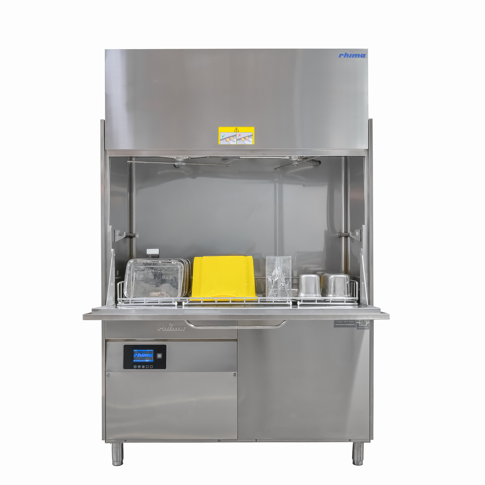 The RP-4 pot washer and utensil washer ( previously known as the LP-4 pot and utensil washer ) is Rhima’s most powerful front loading pot and utensil washer. Rack size of 1350 x 725mm and a useful chamber height of 820mm. Thanks to the Twin pump system, the RP-4 is a seriously powerful general purpose washer.